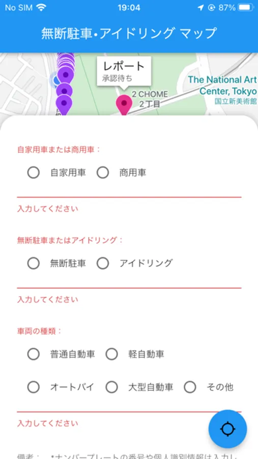 このマップは無断駐車•アイドリングである地点を共有するのが目的です。