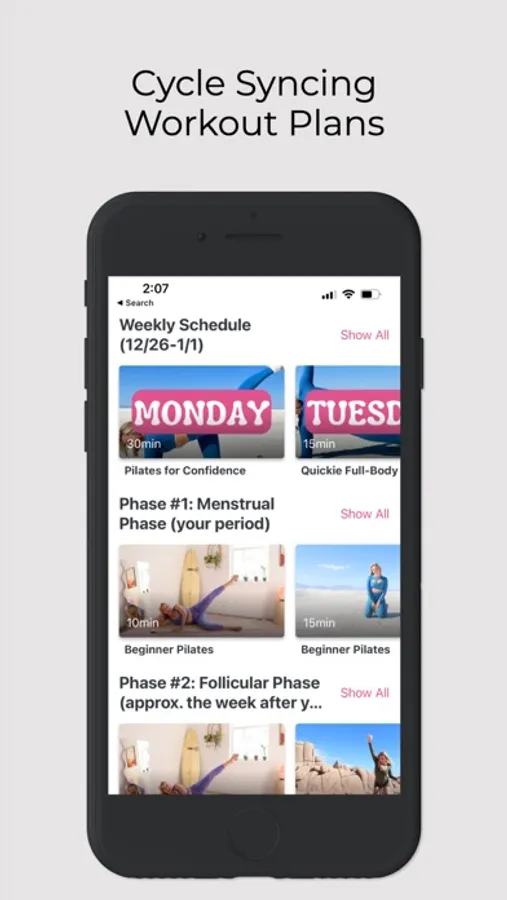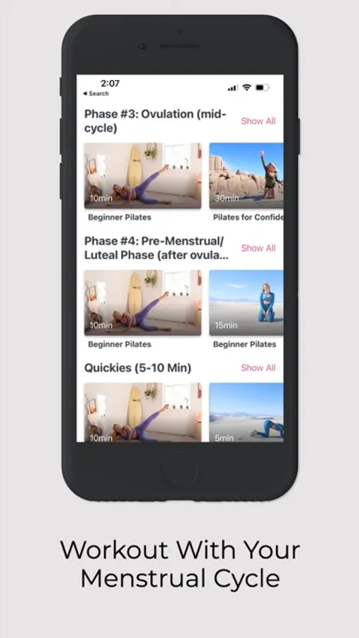 Get new on-demand workouts every week curated to each phase of your cycle: (Menstrual) light workouts, stretching (Follicular) sculpt, strengthen (Ovulatory) cardio, dynamic movements (Luteal) chill workouts, and stretching. Pair this app with your favorite menstrual cycle tracker and start cycle syncing your Pilates workouts!