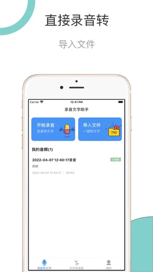 语音文字助手app,主要提供两大免费功能,【录音/语音转文字】和【文字转语音/朗读】。