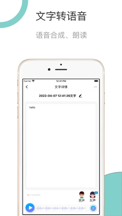 2.文字转语音是一款基于文字转语音的音频配音/朗读软件。轻松实现任意文本内容的录音文件生成。