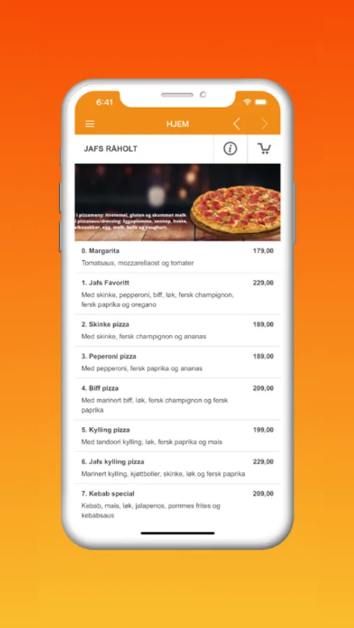 Alle råvarer er ferske og serveres med hjemmelaget brød.