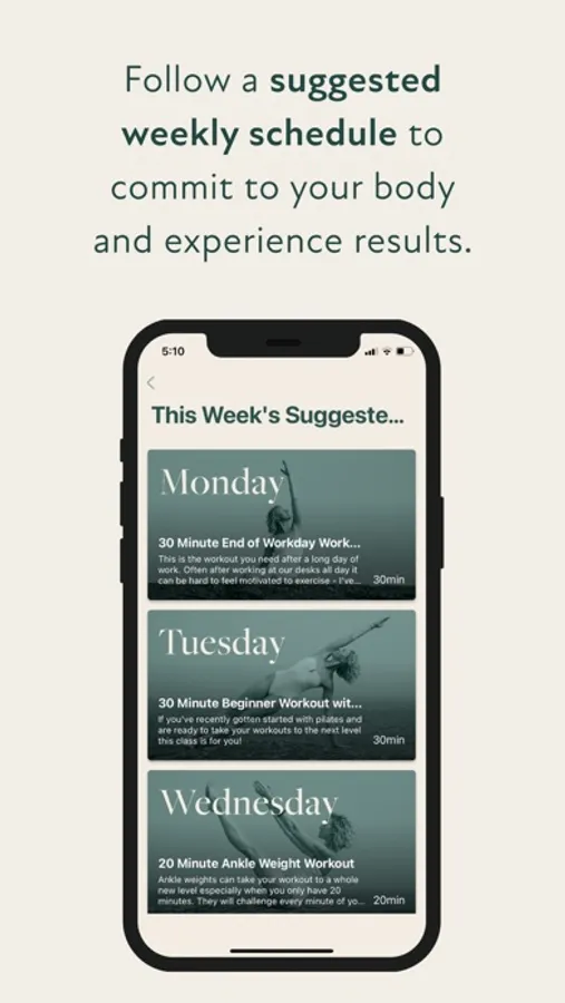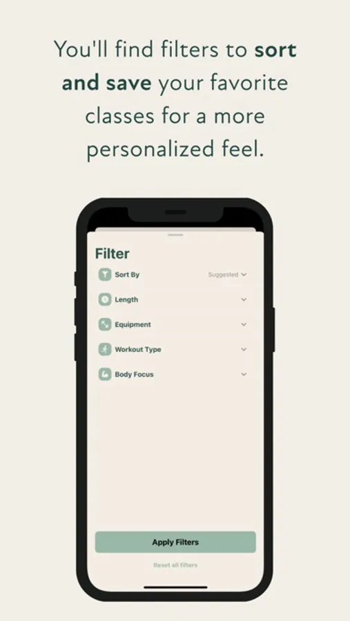 - Suggested Schedules, filters, and the option to save your favorite workouts