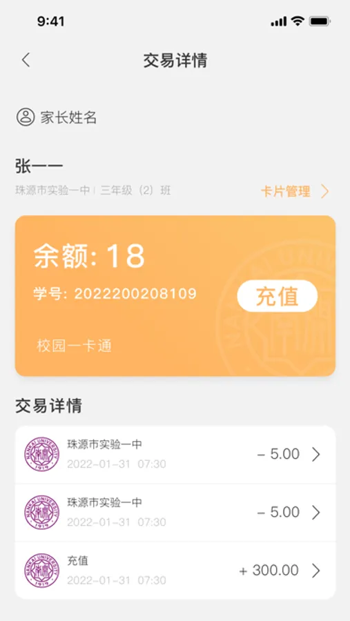 家长随时随地在线完成学生食堂饭卡的充值、消费详情查询、信息变更及退款功能,让孩子不再排队充值,不再担心饭卡余额,放心吃饭,好好学习。
