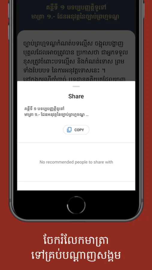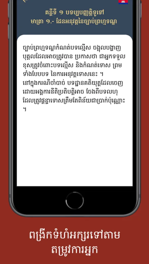 The Cambodia Criminal Code mobile app is designed for everyone to improve the accessibility and readability of Cambodia Criminal Code.