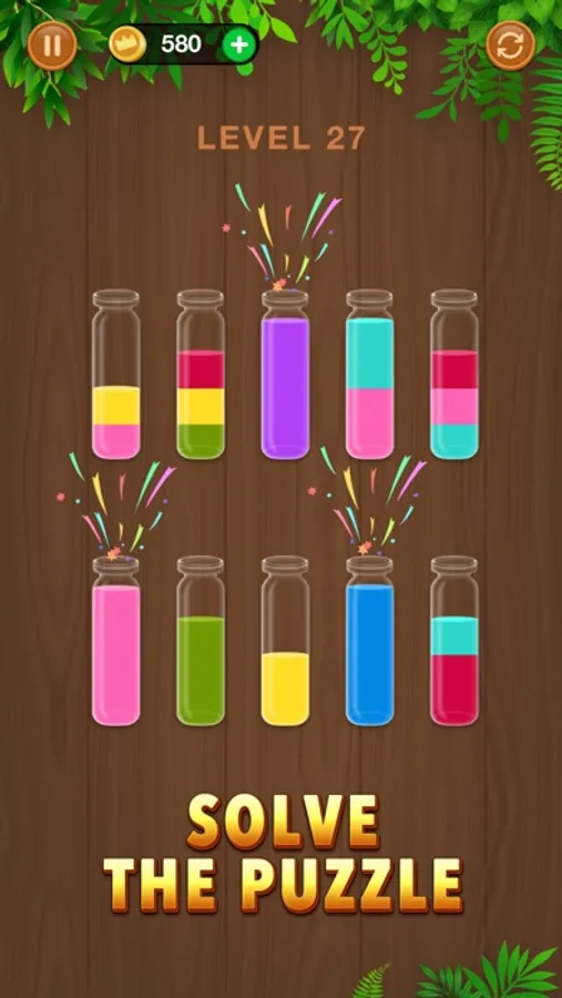 -- Complete more puzzles to unlock unique glass and tube shapes. You can get more backgrounds by finishing more water puzzle levels.