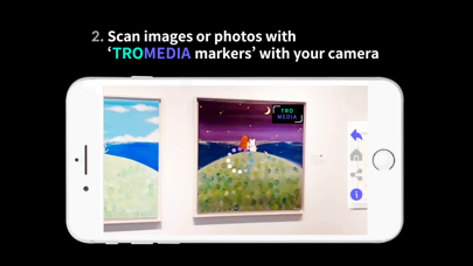 - Scan images or photos with ‘TROMEDIA markers’ with your camera.