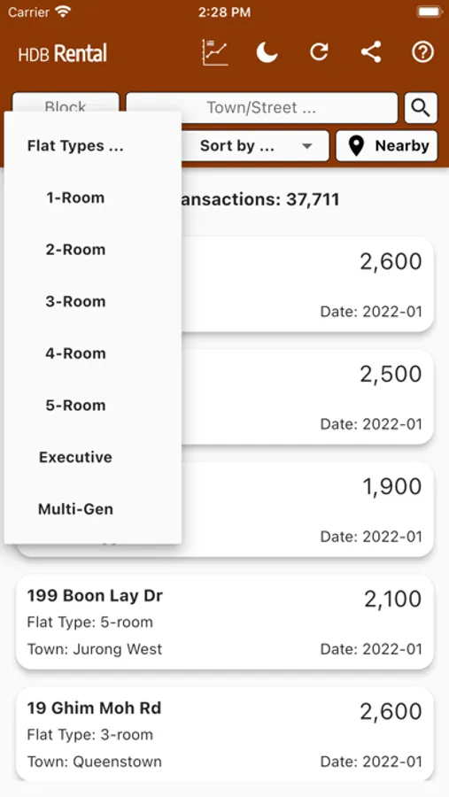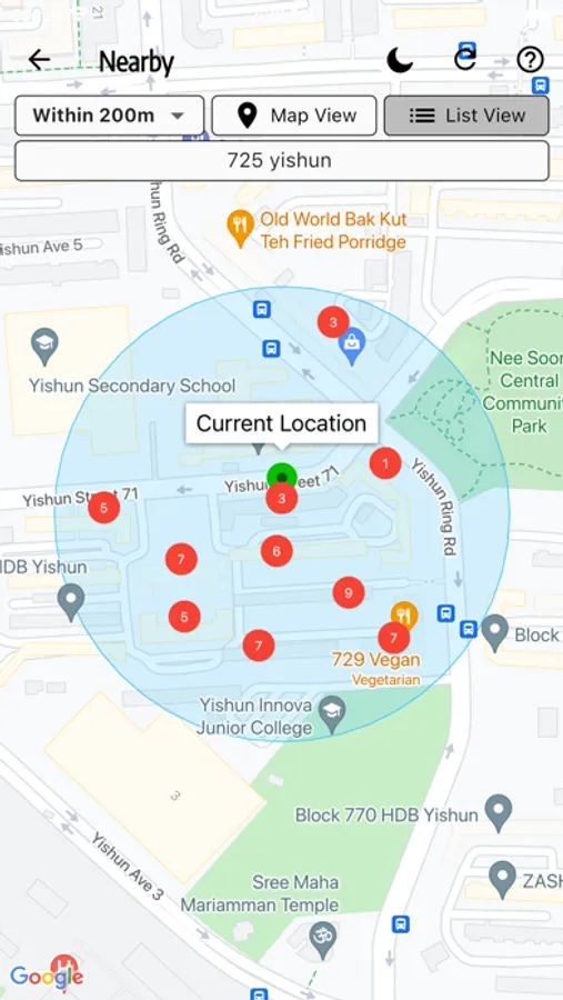 - Filter based on the location within certain distance (200m, 500m and 1km)