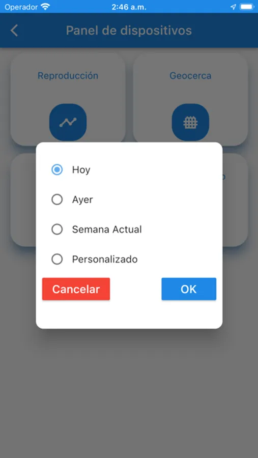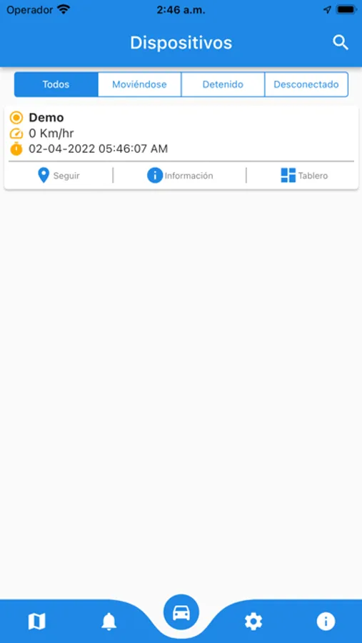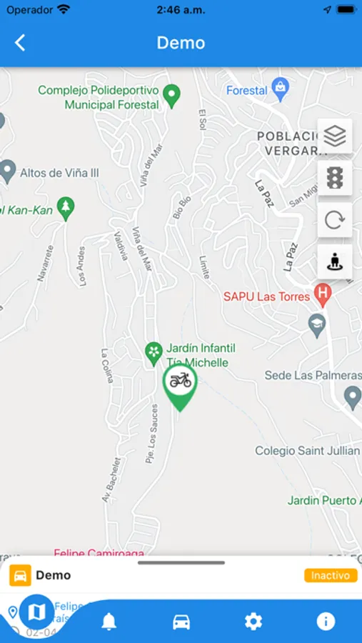 - Modo de mapa. Acceda a unidades, geocercas, recorridos y marcadores de eventos en el mapa con la posibilidad de determinar la localización de su dispositivo móvil.