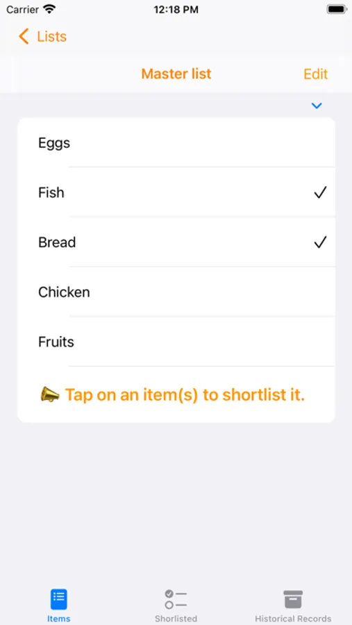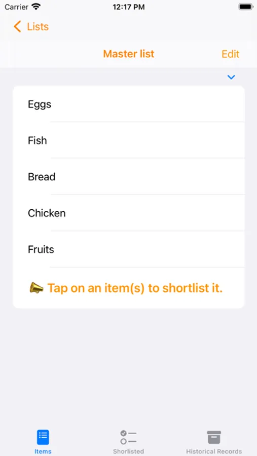 So, once you make the master list, every week when you go shopping in spite of making a new list in Notes or some other location, our app saves that work.. Now you just need to go to the master list you made and just need to select the item you want to buy, tap will shortlist that item..