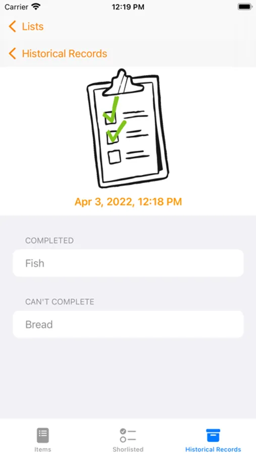 Once every item is marked as complete/can’t complete, you have a chance to archive it. If you wish to, you can archive the list and the archived list can be found at the Historical Records tab.