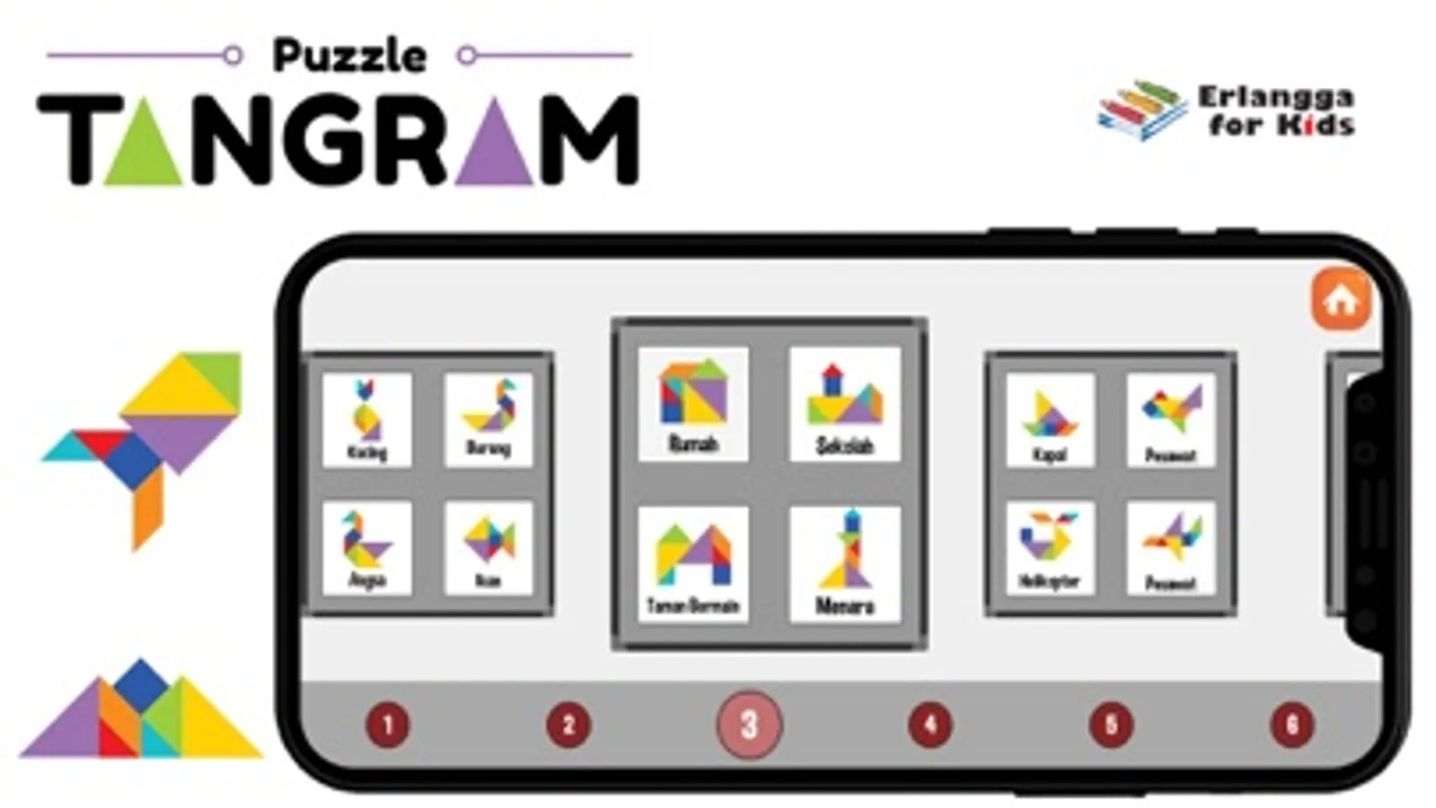 Aplikasi ini merupakan aplikasi pendukung dari Puzzle Tangram yang diterbitkan oleh Erlangga For Kids. Puzzle Tangram ini dapat dibuat berbagai bentuk yang dapat meningkatkan kemampuan kognitif anak.