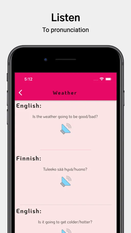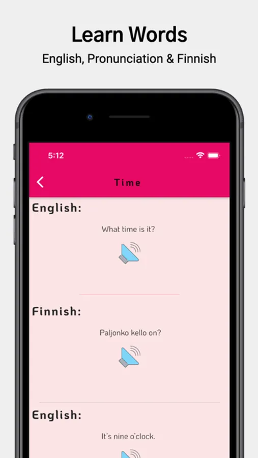 • In every lesson, you can listen to the Finnish word pronunciation as well as see Finnish word in english language.
