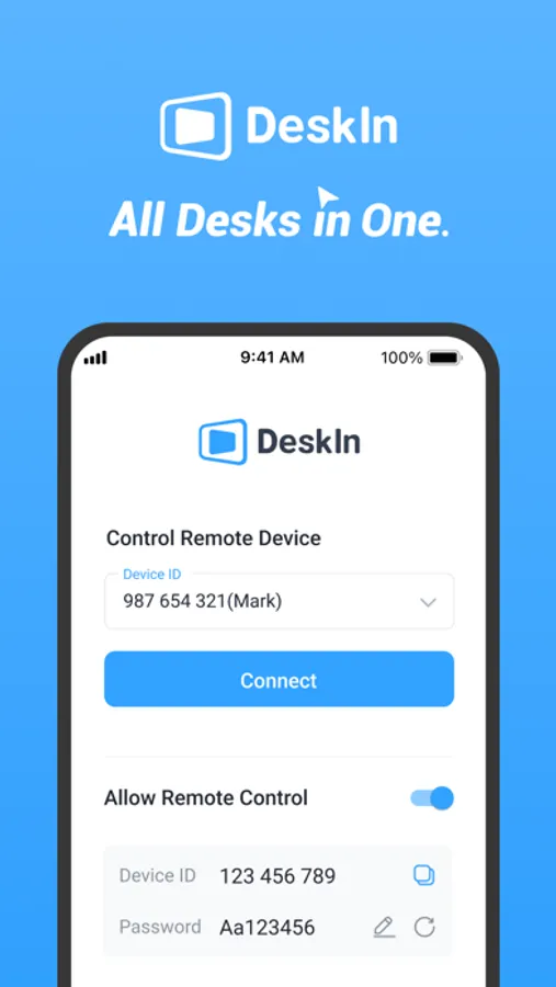 Install DeskIn remote desktop app on your iPad or iPhone: