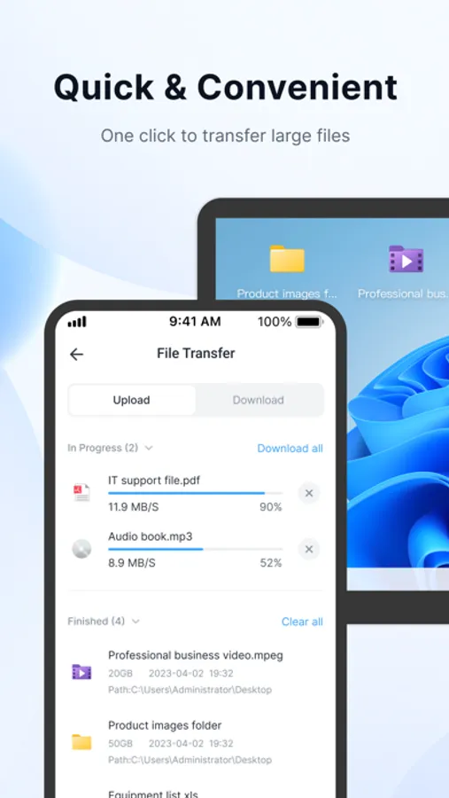 4. you can easily transfer and manage large files from one device to another in just few seconds.