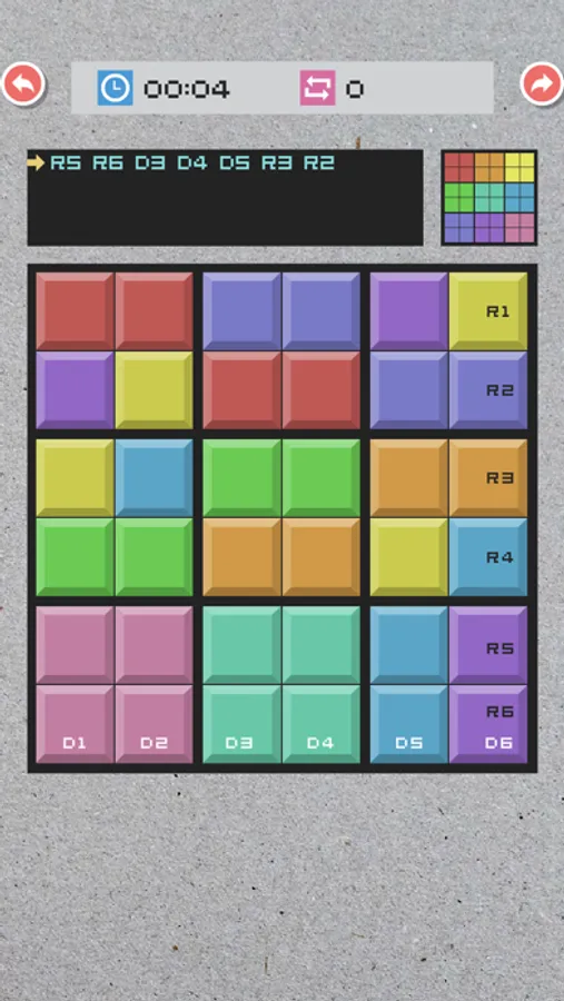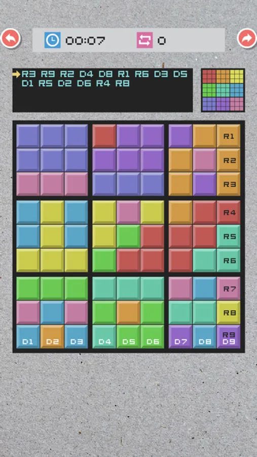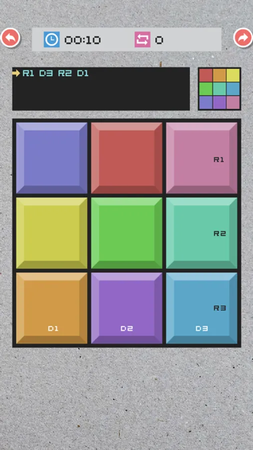 How to play 1: According to the written records of the shuffling order, slide the squares in reverse order to spell back the nine colors of the Rubiks Cube.