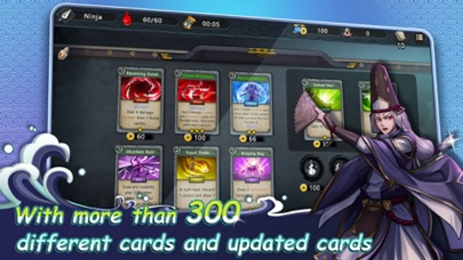 Four distinctive classes - the Monk, Samurai, Onmyoji, and Ninja, each with their exclusive set of decks. With more than 300 different cards, you will be able to build your own deck based on the class you have chosen to challenge those bizarre monsters from Japanese folklore.