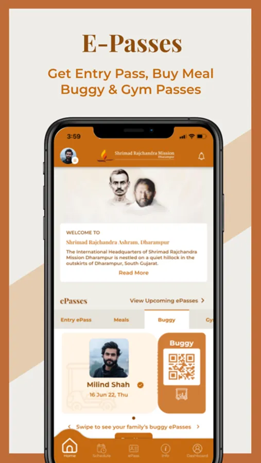 - Activate the fast track ePass for entry to the Ashram for you and your family.
