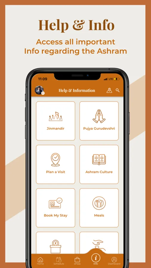 - Access Help & Information about the Ashram to manage your daily needs, like View Jinmandir Puja and Arti timings, How and where to meet Pujya Gurudevshri in the Ashram, Ashram culture, and much more!