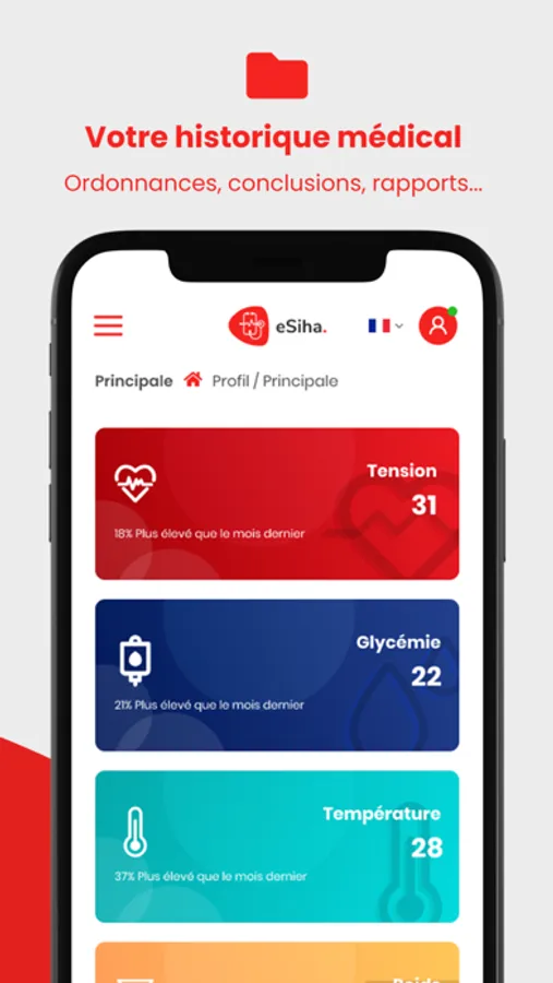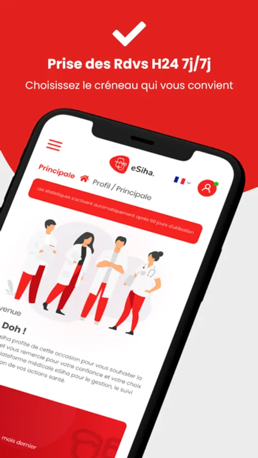 eSiha est une application qui vous permet de trouver un médecin près de chez vous, de voir ses disponibilités ou même de prendre un rendez-vous sans besoin de vous déplacer. Elle vous permet également d'avoir une teleconsultation; et peut aussi permettre au médecin de rédiger une ordonnance numérique qui sera envoyer au pharmacien. Cette application dédiée aux médecins et non seulement les patients, vous permet de gérer vos patients et leurs dossiers médicaux grace à la fonctionnalité d'enregistrement d'historique, ce qui rend le dossier médical mobile et peut être envoyé vers un autre médecin si le patient change son médecin. Non seulement ça, mais elle est dédiée aussi aux centres médicaux et permet de gérer chaque département ou spécialité