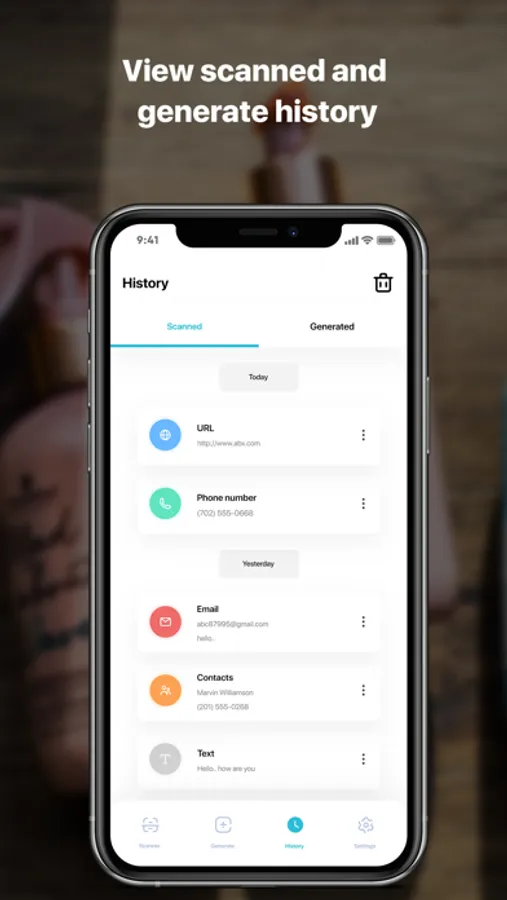 This fast and efficient QR and Barcode Reader app also allows you to create QR codes effortlessly. Just open the option, enter the data and create codes in seconds. If you are searching for a Code Creator app that allows you to easily create QR codes, then you should definitely try our app. You can also share the generated QR codes to anyone via the internet with just a few taps.