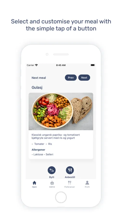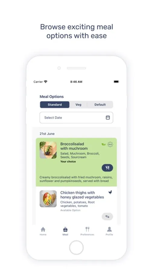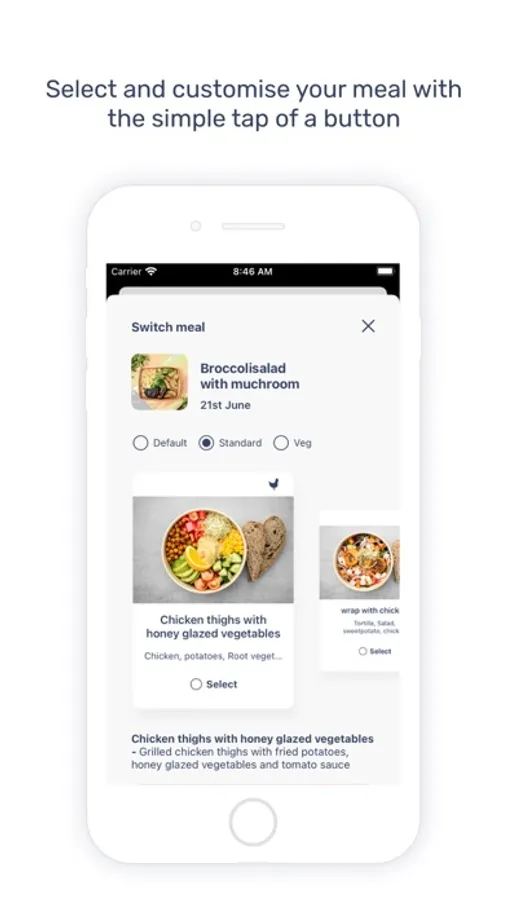 You can select, switch, or even cancel a meal, all at the simple tap of a button!