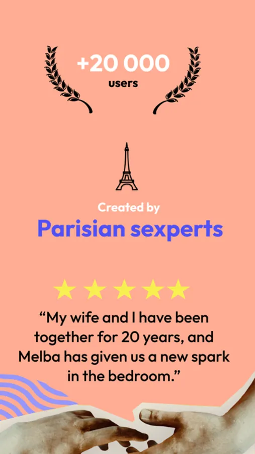 Brought to you by Parisian sexperts, Melba is meant to guide you and your partner together - empowering you both to learn new techniques, explore fantasies, and connect more deeply with each other. Melba believes pleasure is for all - no matter your age, background, gender, or sexual orientation. No matter what your needs may be, Melba believes sexuality and pleasure should be explored freely, without judgement or taboo.