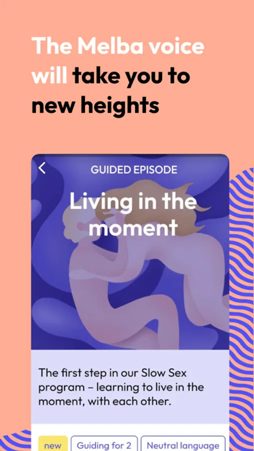 Allow yourself to be guided by Melba’s voice, with episodes that last 15 to 30 minutes. You can start, stop and pause anytime you like - discover and explore sexuality on your terms, on your schedule.