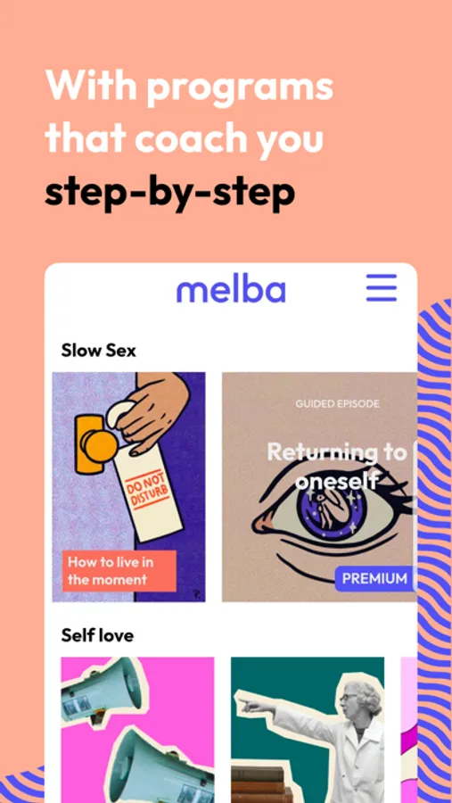 Our research-based programs will coach you step-by-step. Within minutes, you can master a new skill to spice up the bedroom, live out your fantasies, and re-discover yourself and your partner with Melba.