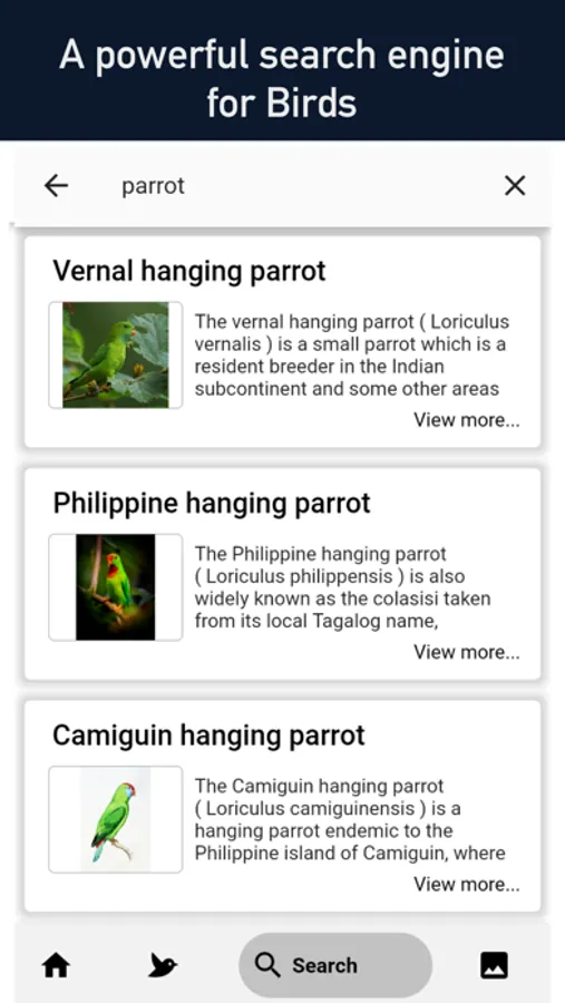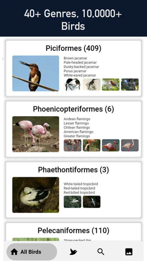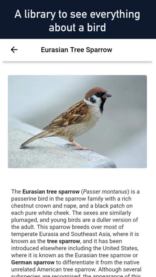 - Identify a bird by photo & view all data with Bird Identifier feature.
