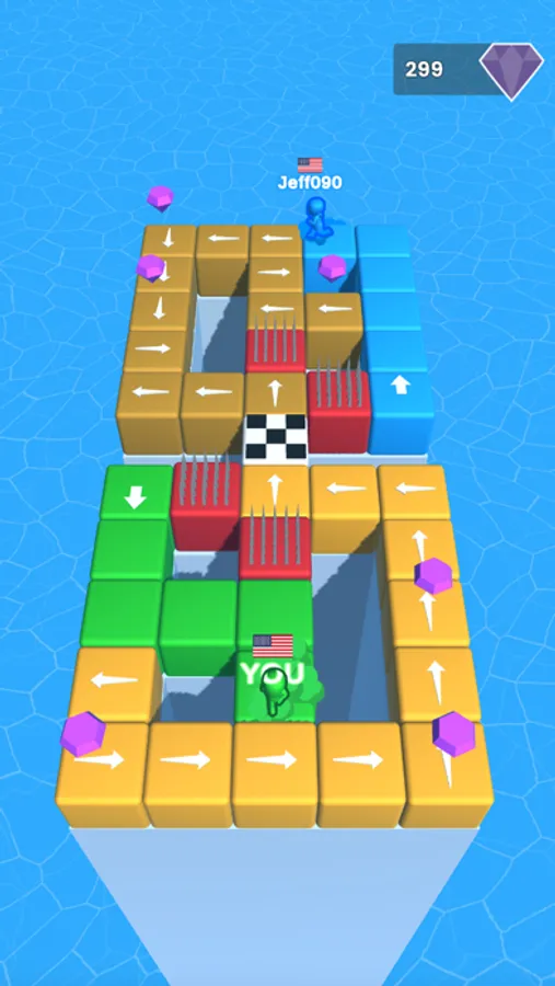 Tap the cubes to rotate their direction to make a path and avoid obstacles. Challenge other players and race to the finish!