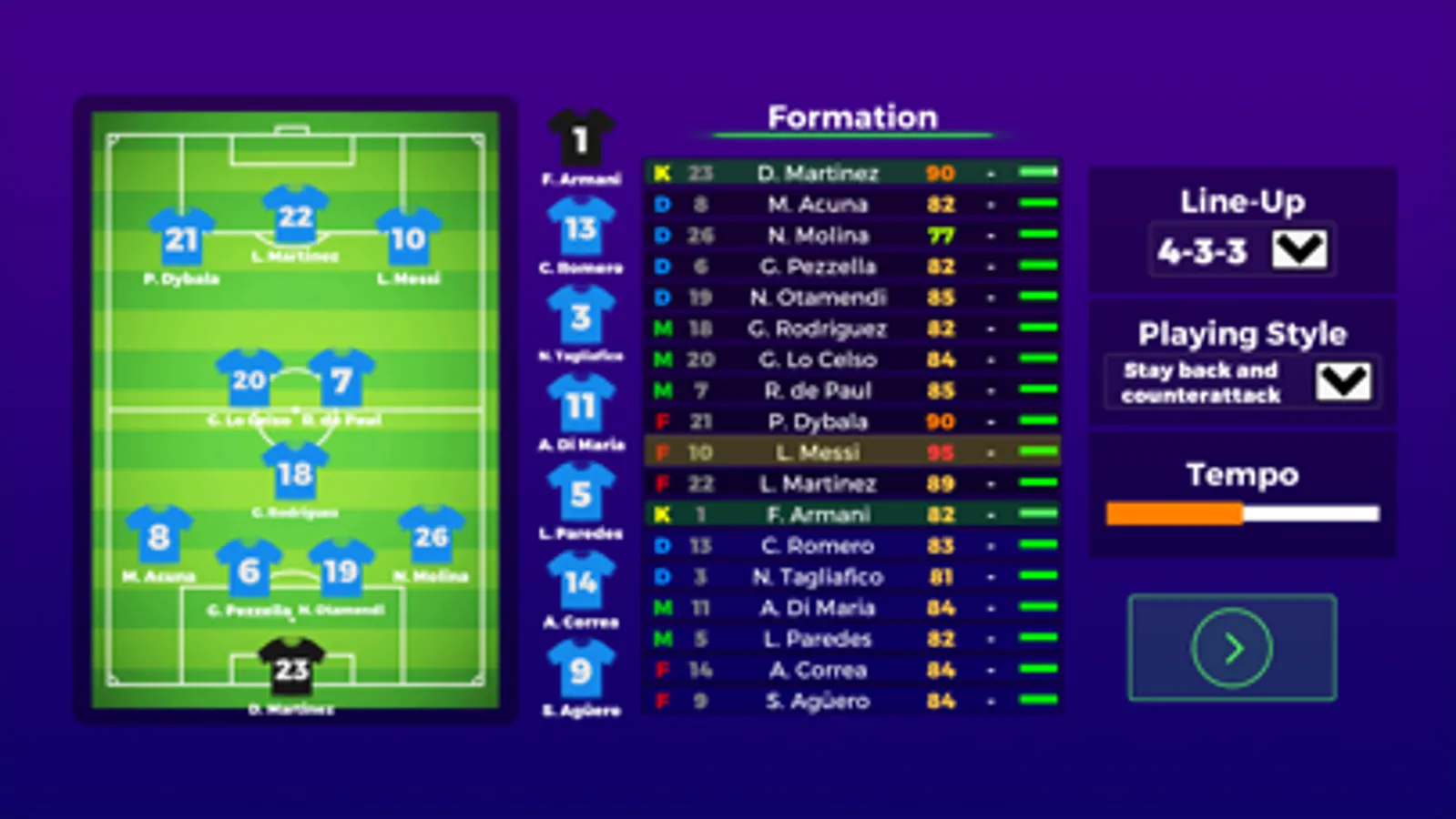 Choose and manage one of the national football teams of 10 countries participating in the latest Copa America. Starting from the group stages and win the trophy that every country dreams of. Set your squad, your game plan. Keep your players fit and motivated. Guide your players on the sidelines in matches. Sometimes deal with the referee or the opponent.Keep your players in the match. Win the matches. Improve your manager.