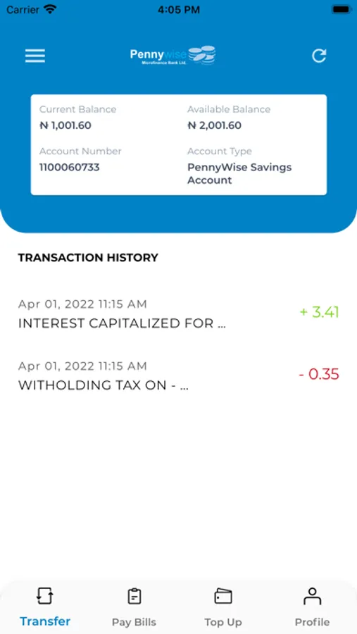 Pennywise Mobile brings the bank into your hands. The app has the following features:
