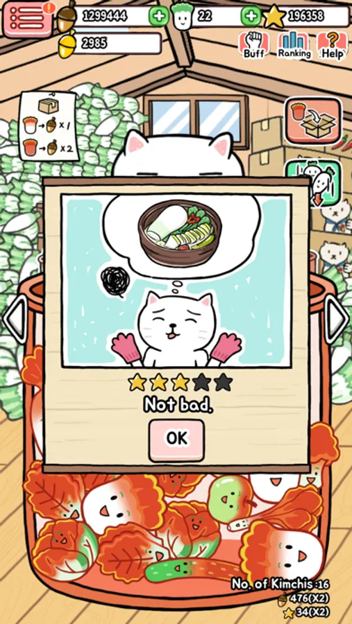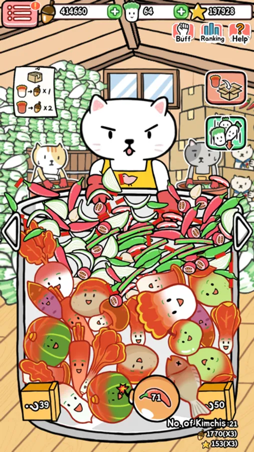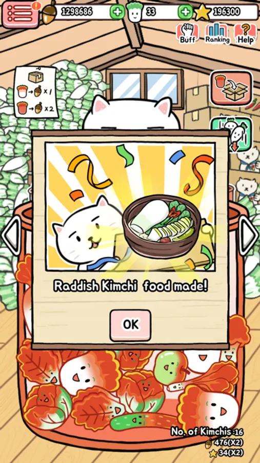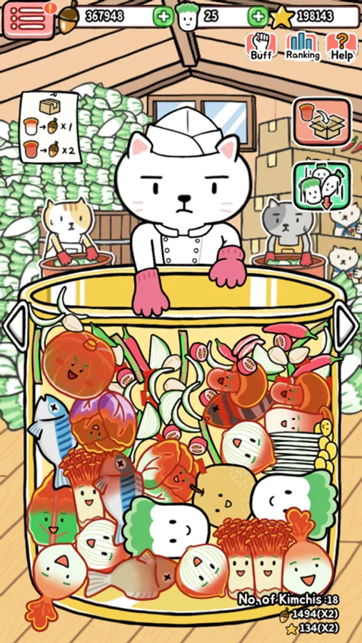 Stumble upon random recipes made with Kimchi and get acorns to decorate the farm and festival.