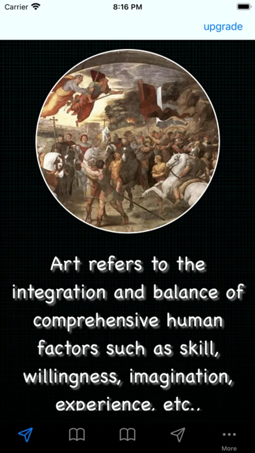 Art is a broad range of human activities (or its products) that involve creative imagination and are designed to express technical proficiency, beauty, emotional power, or conceptual ideas.