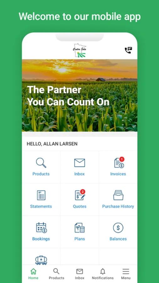 Serving communities throughout central Minnesota, Centra Sota Cooperative offers a variety of products and services including Agronomy, Energy, Feed, Lawn Care, and Country Stores. With this app you can view orders and invoices, make payments, view available balances, see key stats on your operation, exchange messages with our team, learn about specific products, request and accept quotes, and more.