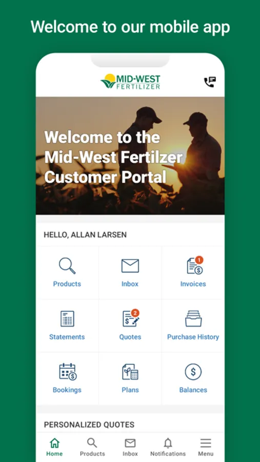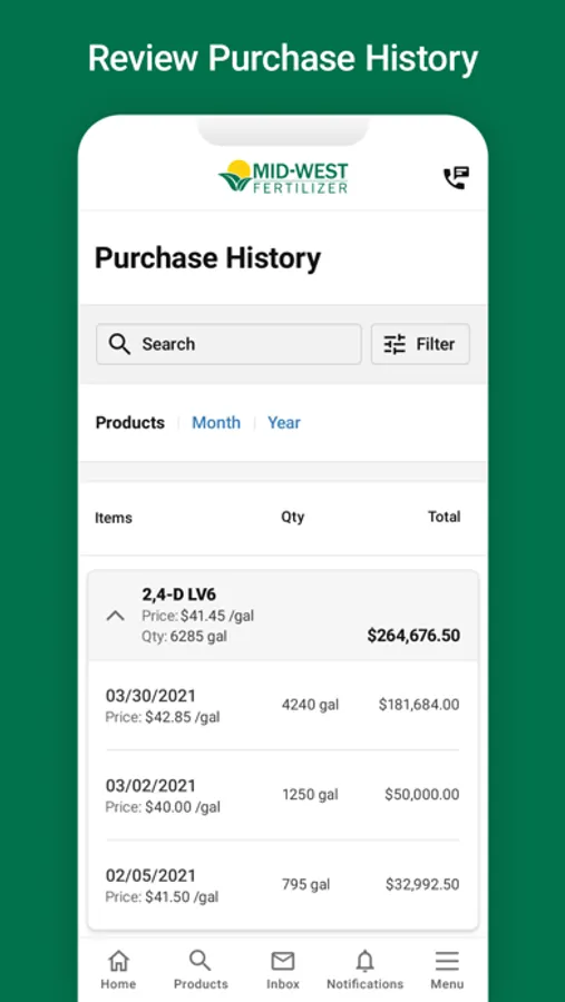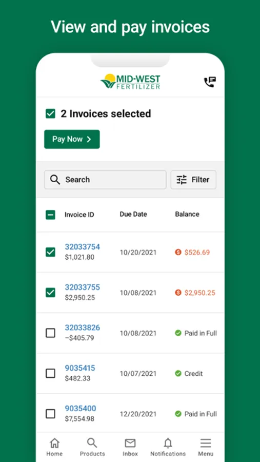 • Easily look up all of your Mid-West Fertilizer account information. Find all of your previous purchases or view and pay your invoices in a few clicks.