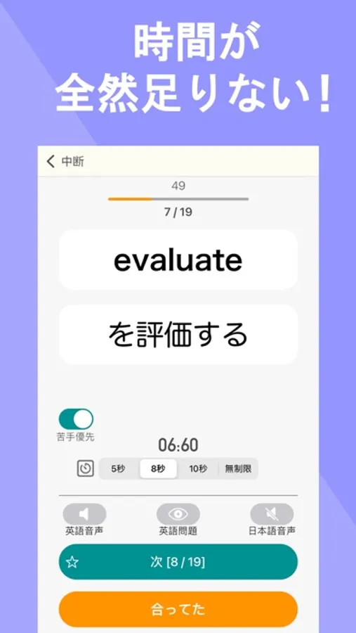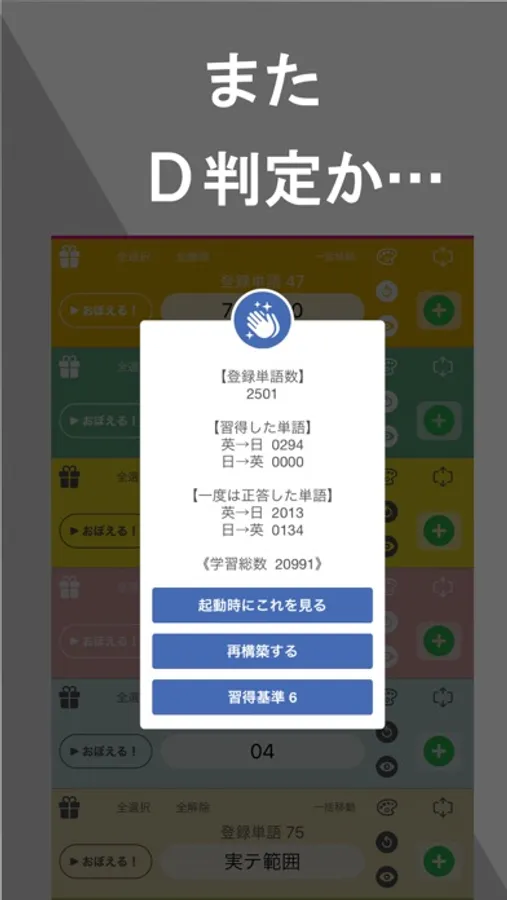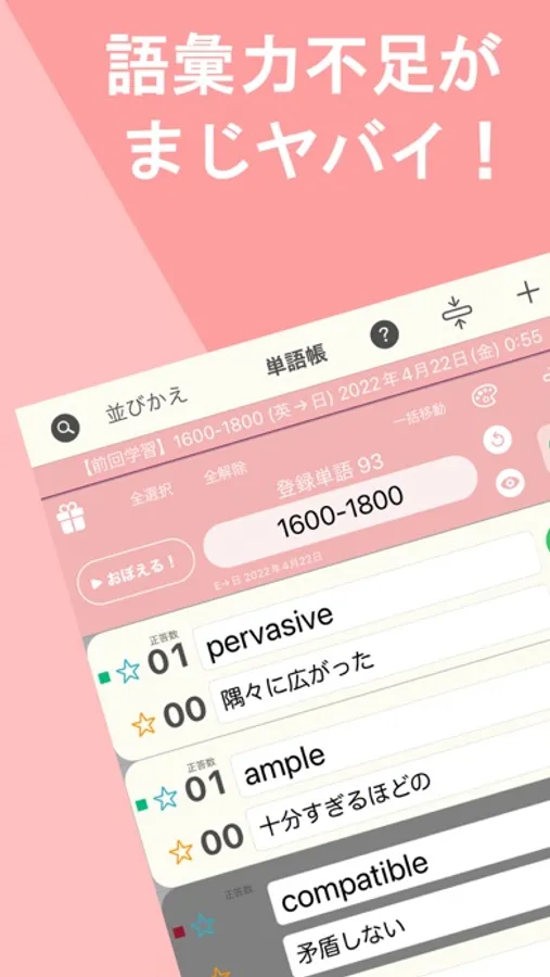 そこで、やる気があることは大前提で!とにかくシンプルに!時短で貪欲に語彙を増やせるように作りました。やる気がある人向けの決戦用アプリです。