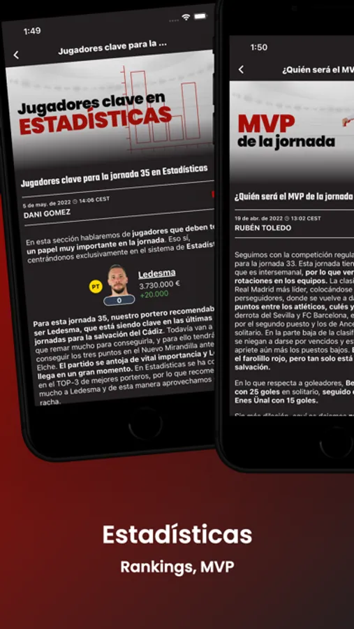 - Estadísticas, Rankings, MVP y resumenes de cada jornada de liga