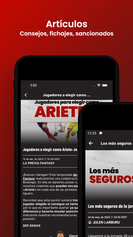 Disfruta de las noticias de la liga de futbol fantasy gracias a los contenidos del blog oficial de Biwenger AS. Recibe al instante en tu dispositivo los mejores picks para cada jornada de liga, los jugadores en racha y los onces de cada equipo de futbol para que puedas alinear al jugador adecuado.