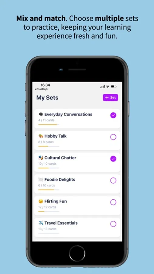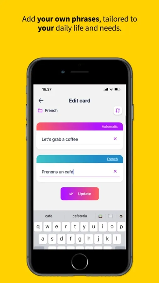 - Add practical phrases that are relevant to your everyday life. No useless phrases like "I love apples."