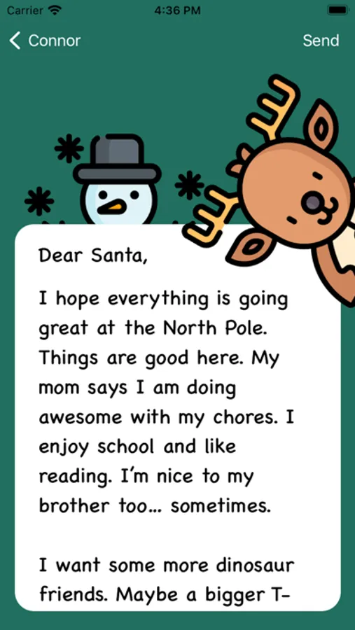 They can also write and receive letters from Santa, complete goals set by Santa's elves, and check if they are on the nice or naughty list. All of this feedback is customized by the parent/guardian within a password-protected area of the app.