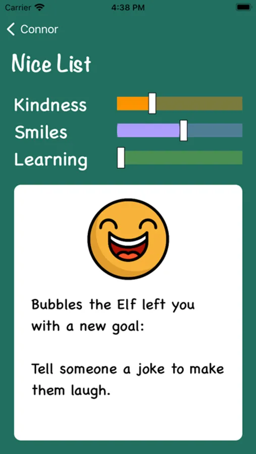 It's a way of processing a variety of their emotions and reactions. After the child completes a certain number of questions within a category, they will receive a letter from a Christmas Elf. This letter is customized by the parent/guardian to include specific details about that child. It's all about making the child feel heard and giving meaningful feedback.