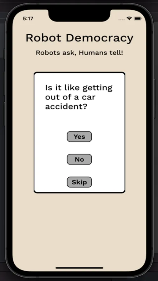 Are you tired of interacting with actual people? Would you rather be asked pointless questions by a robot instead? By golly have we got the application for you. The questions you will be presented with are completely computer generated and answered by legions of homo sapiens that came before you. Don't hesitate, download today!