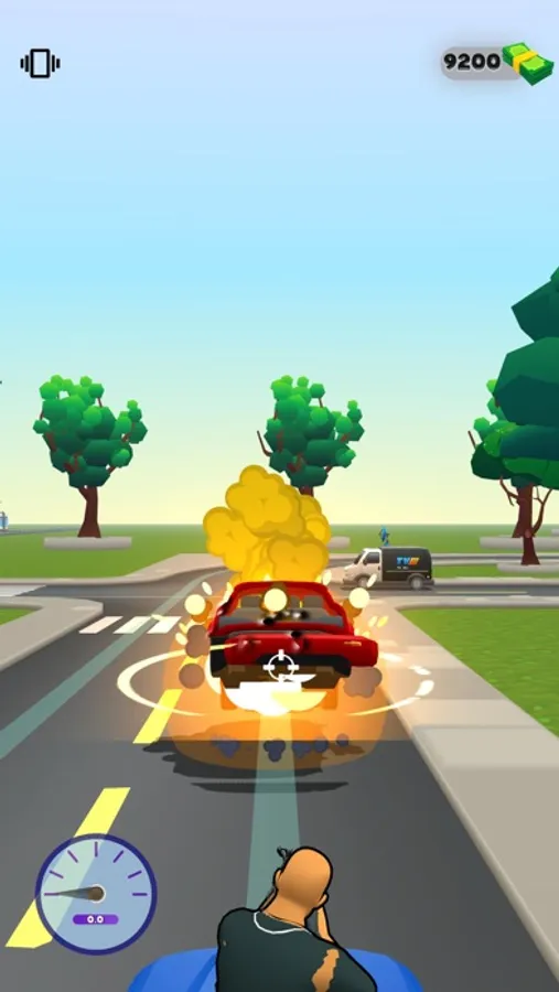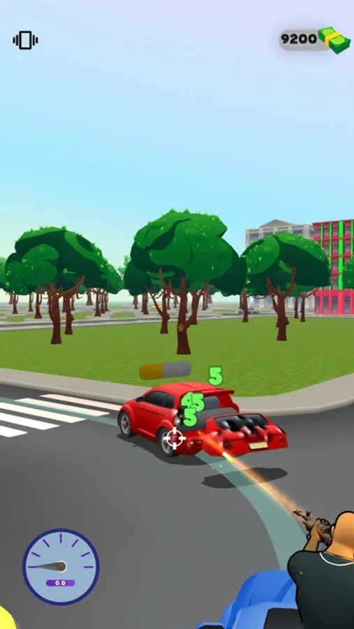 Tap and Hold to chase the target car. Try to shoot and destroy the target to earn more money.