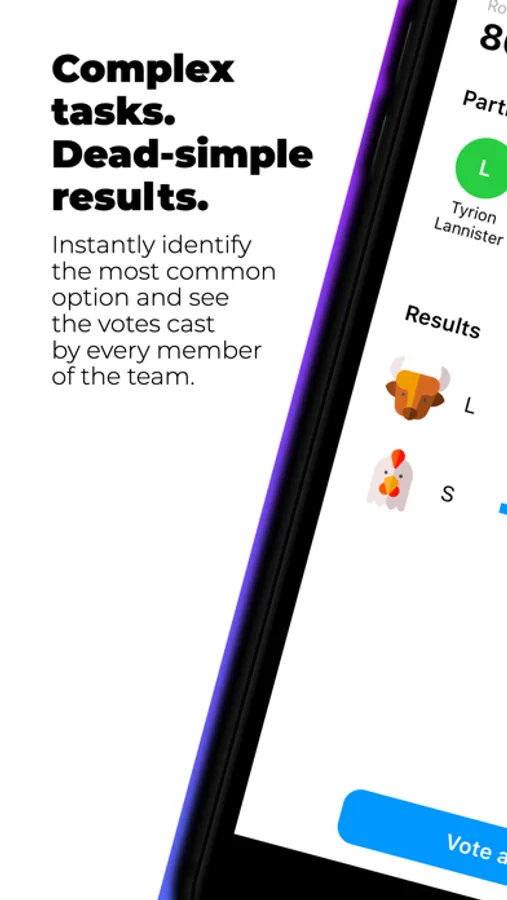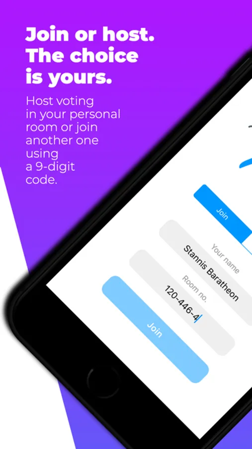 Host voting in your personal room or join another one using a 9-digit code. No sign up is needed so you can start ASAP.