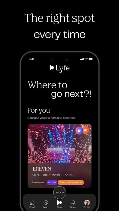Based on your interests, the whereabouts of your closest friends and what’s hot in your area, Lyfe provides you with a personalized game plan for your day or night out. No more outdated info or unhelpful reviews. With Lyfe, people help each other find the next place to go by live voting and sharing, while keeping their friends in the loop on their plans.