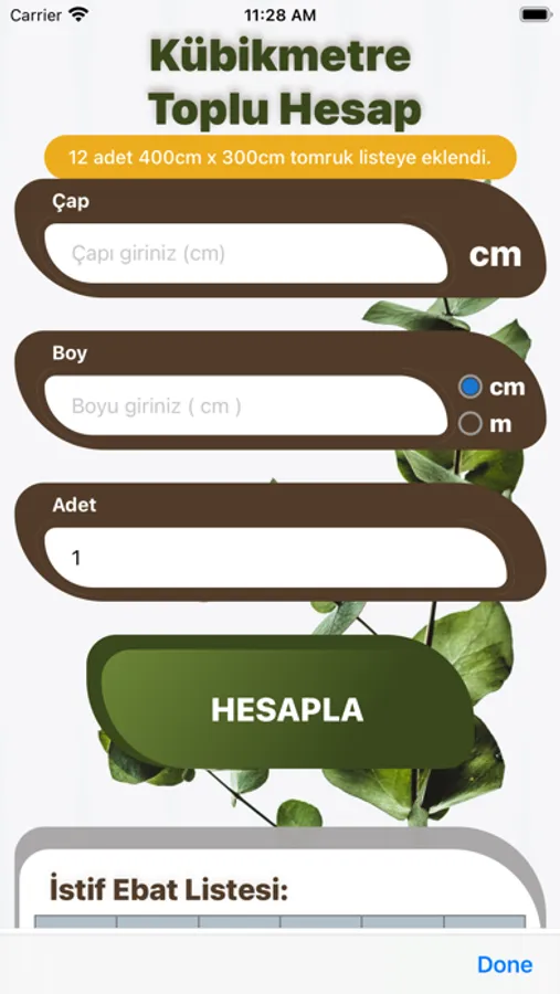 Ağaç gövdesi (tomruk) hacim hesaplama uygulamasıdır.