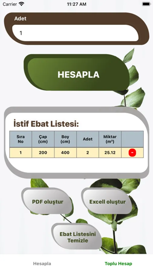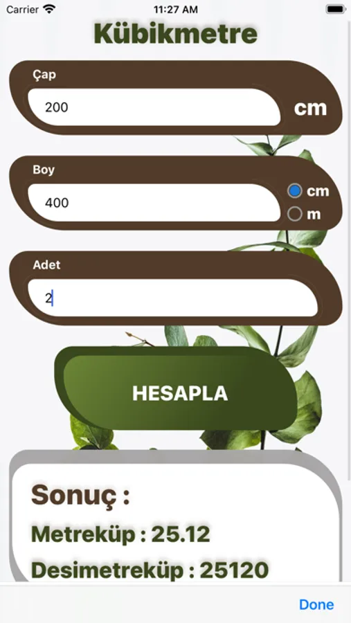 Siz tomruğun hacmini ve boyunu giriniz, uygulama hacmini hesaplar .