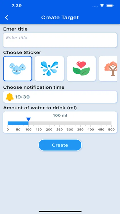 The application allows users to set a goal of drinking water during the day according to each defined time frame.