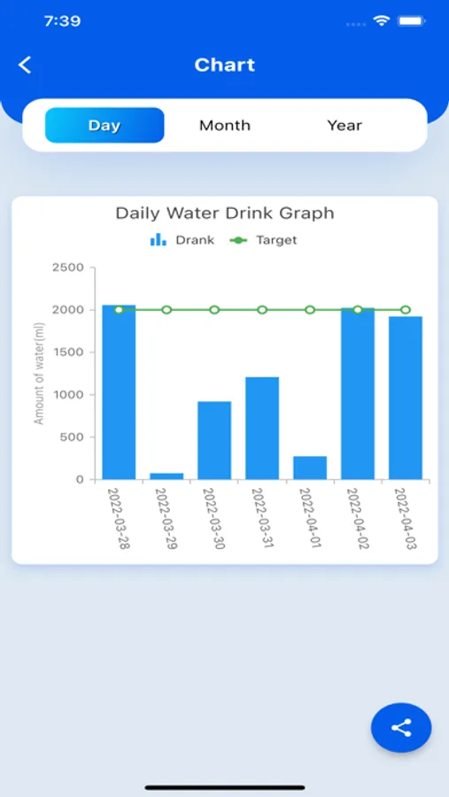 Report the amount of water you drink by day, month, year.